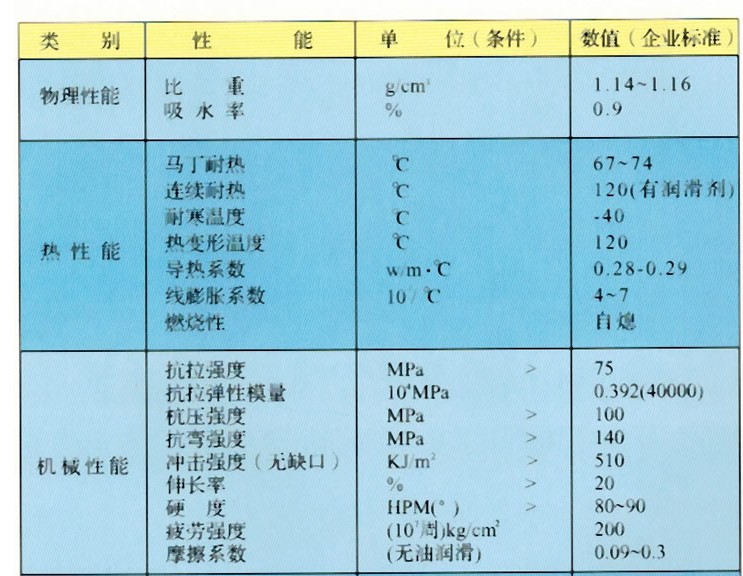 (3) 耐磨自潤滑性、提供了優于青銅、鑄鐵、碳鋼和酚醛層壓板在無油或(脫油)潤滑應用時的工作性能,降低消耗,節約能源;